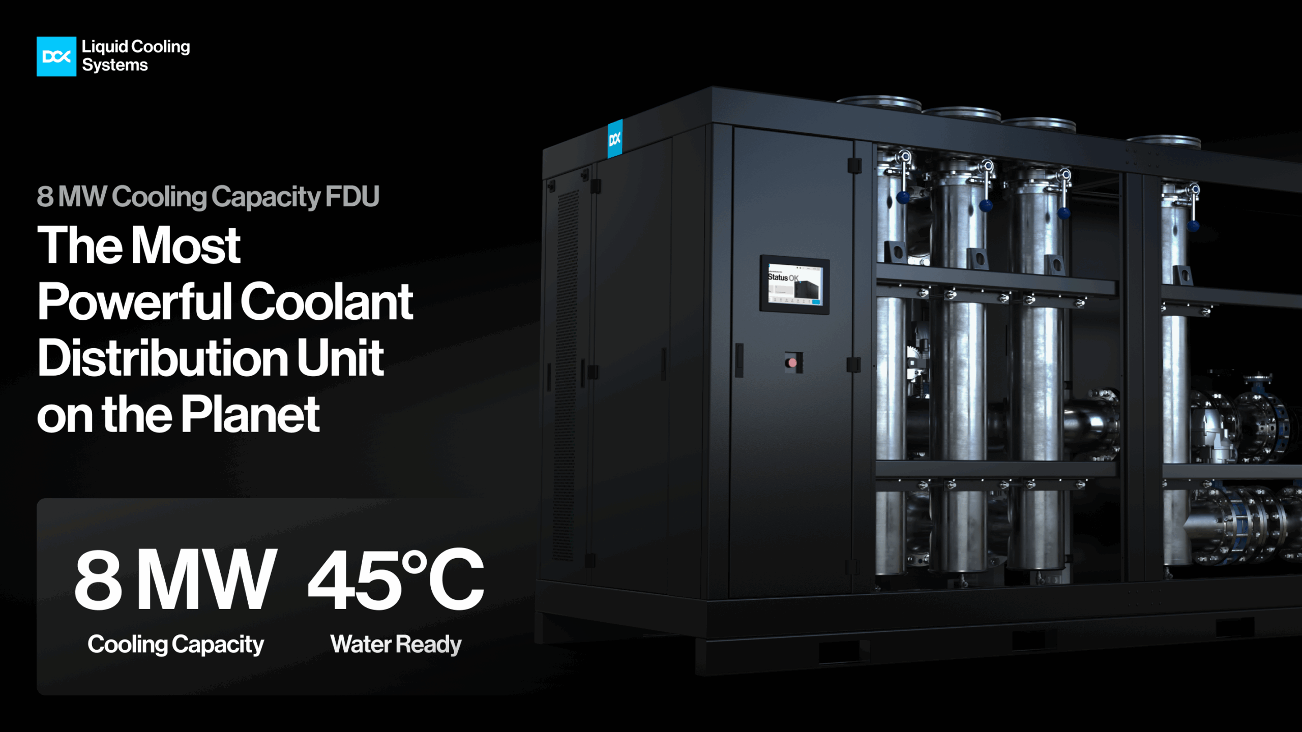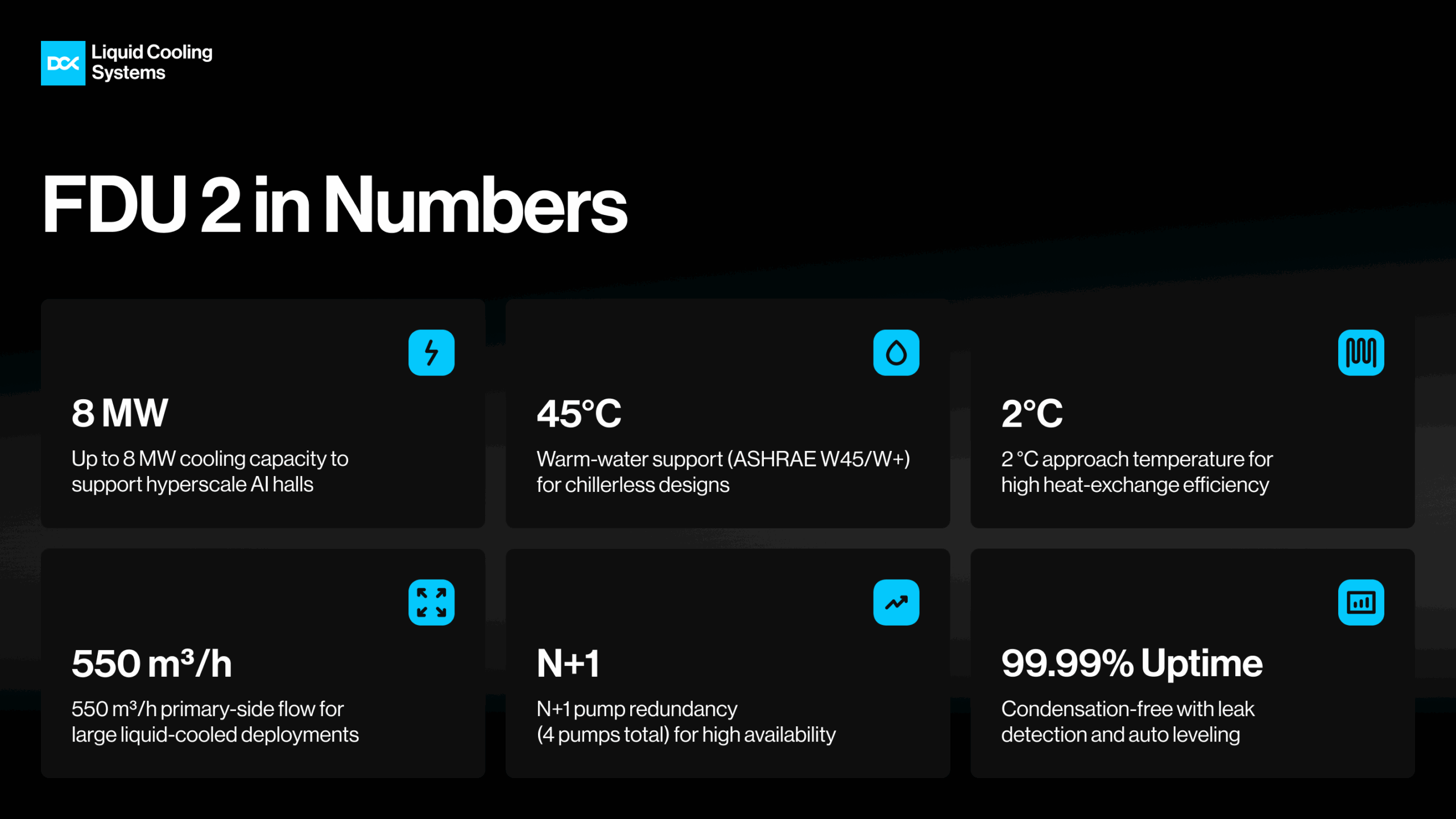 Industry record 8MW heat transfer (cooling) capacity, supporting hyperscale AI growth.